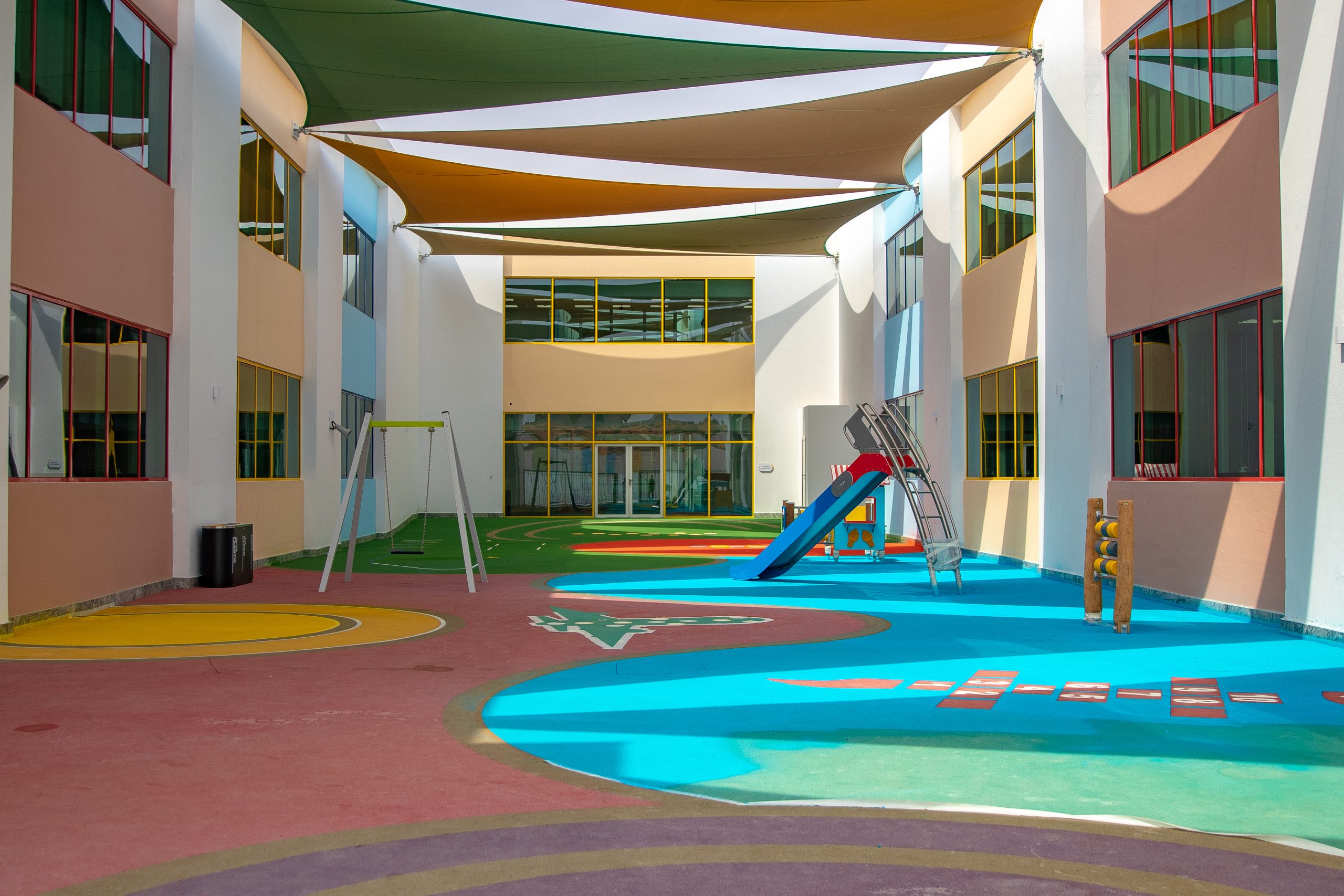 The project’s total built-up area is 22,934.63 m2, which includes a school building